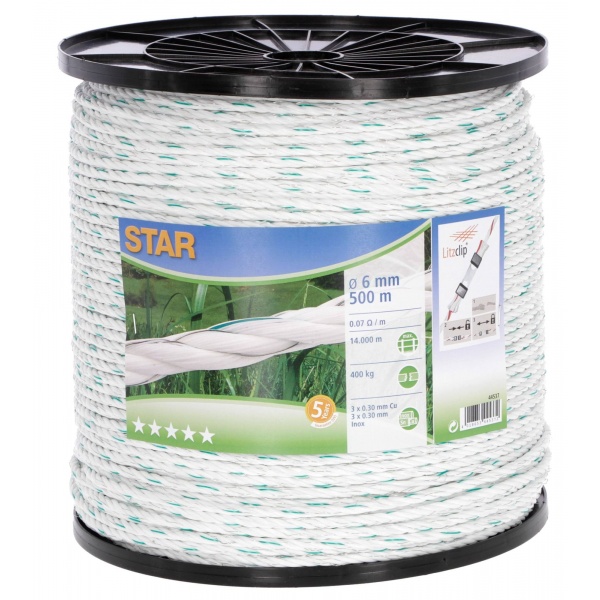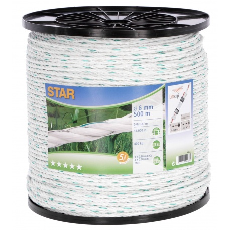 Vodivé lanko STAR navrhnutý s ohľadom na najvyššie požiadavky moderného chovu zvierat. Najkvalitnejšie materiály zaručujú vynikajúcu funkčnosť a trvalo vysokú bezpečnosť pri starostlivosti. Určené pre krátke, stredné a dlhé elektrické ohradníky pre všetky hospodárske zvieratá, aj tie s hrubou srsťou.