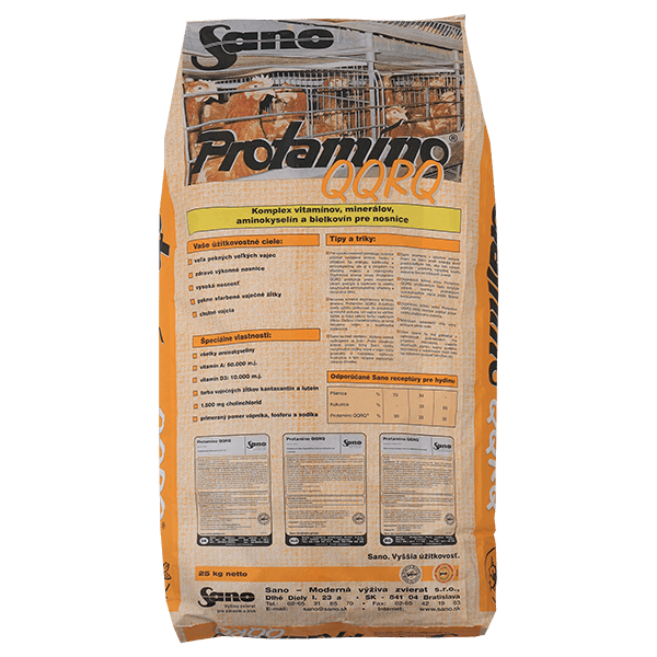 Protamino QQRQ® je vysoko kvalitný proteínový koncentrát určený pre sliepky s cieľom zvýšiť znášku a podporiť ich zdravie. Obsahuje vyvážený pomer aminokyselín, vitamínov a minerálov pre optimálny rast, vitalitu a reprodukčný výkon.