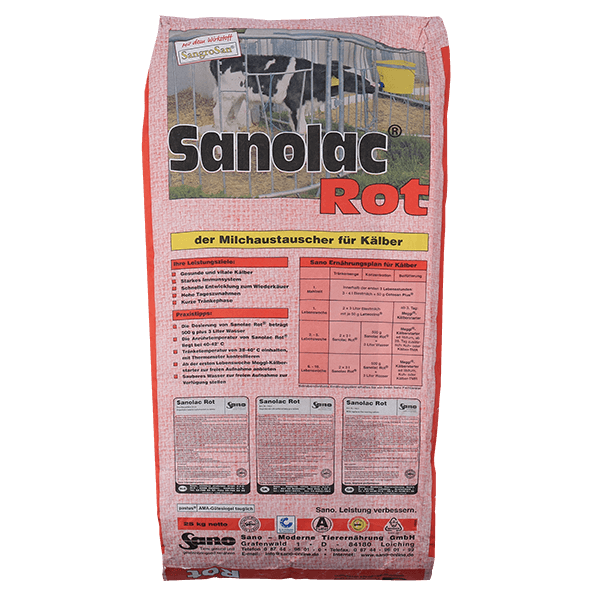 Sanolac Rot® - je vysokokvalitná mliečna náhrada určená pre teľatá, špeciálne prispôsobená pre použitie v dojčiacich automatoch. Je zostavená tak, aby podporovala zdravý rast, znižovala riziko hnačiek a zabezpečila rovnomerný príjem živín v prvých týždňoch života.